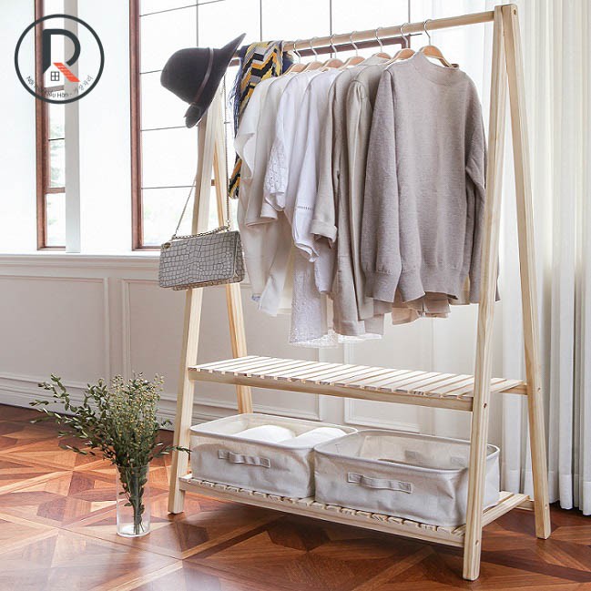 Giá treo quần áo chữ A, 2 tầng size M màu gỗ tự nhiên NTHQPlus-4Jt